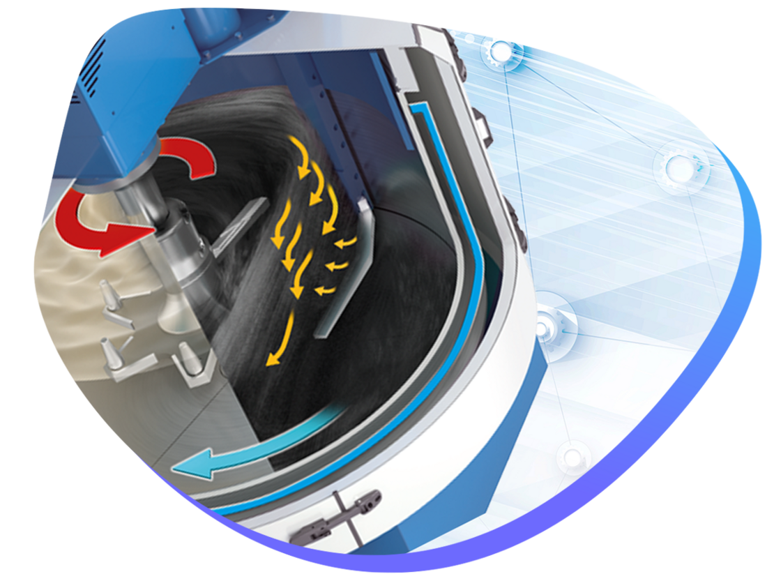 Eirich混合技术与其他混合系统的不同之处在于它有一个带有偏心布置的混合工具的旋转混合容器。主要优点:在工具几何形状和工具速度方面,强力混合机可以最佳地适应您的工艺相关任务。这提供了广泛的应用可能性。