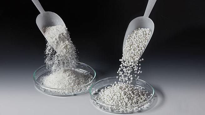 Many industrially used substances are made up of very fine particles. This can be caused by the manufacturing process, or it can be down to usage requirements, as is e.g. the case with pigments. Dust avoidance and good dosing accuracy can be achieved by transforming the dusts into granulates. One of the methods for transforming powdery substances into granulates is build-up granulation in mixers. In many industries this is done with EIRICH mixers. Depending on the material, it can be used to manufacture granulates ranging in diameter from 100 µm to 5 mm.